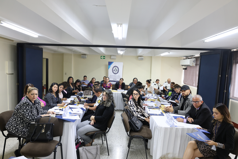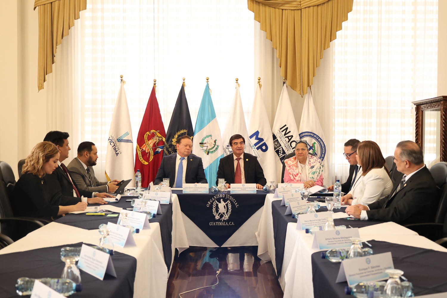 Organismo Judicial -OJ-, Ministerio Público -MP-, Ministerio de Gobernación -MinGob-, Instituto de la Defensa Pública Penal -IDPP- y a partir del año 2019 el Instituto para la Asistencia y la Atención a la Víctima del Delito-IV- y recientemente en el año 2025 Instituto Nacional de Ciencias Forenses de Guatemala -INACIF-.